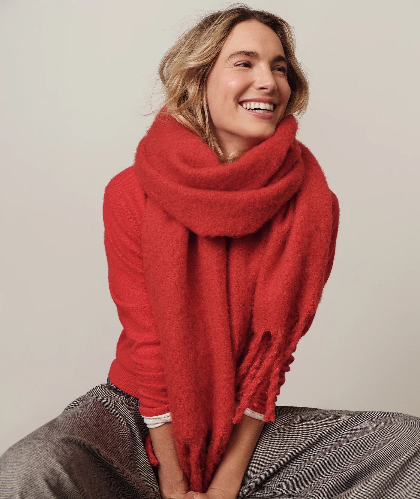 Brushed Blanket Scarf- Cherry Red