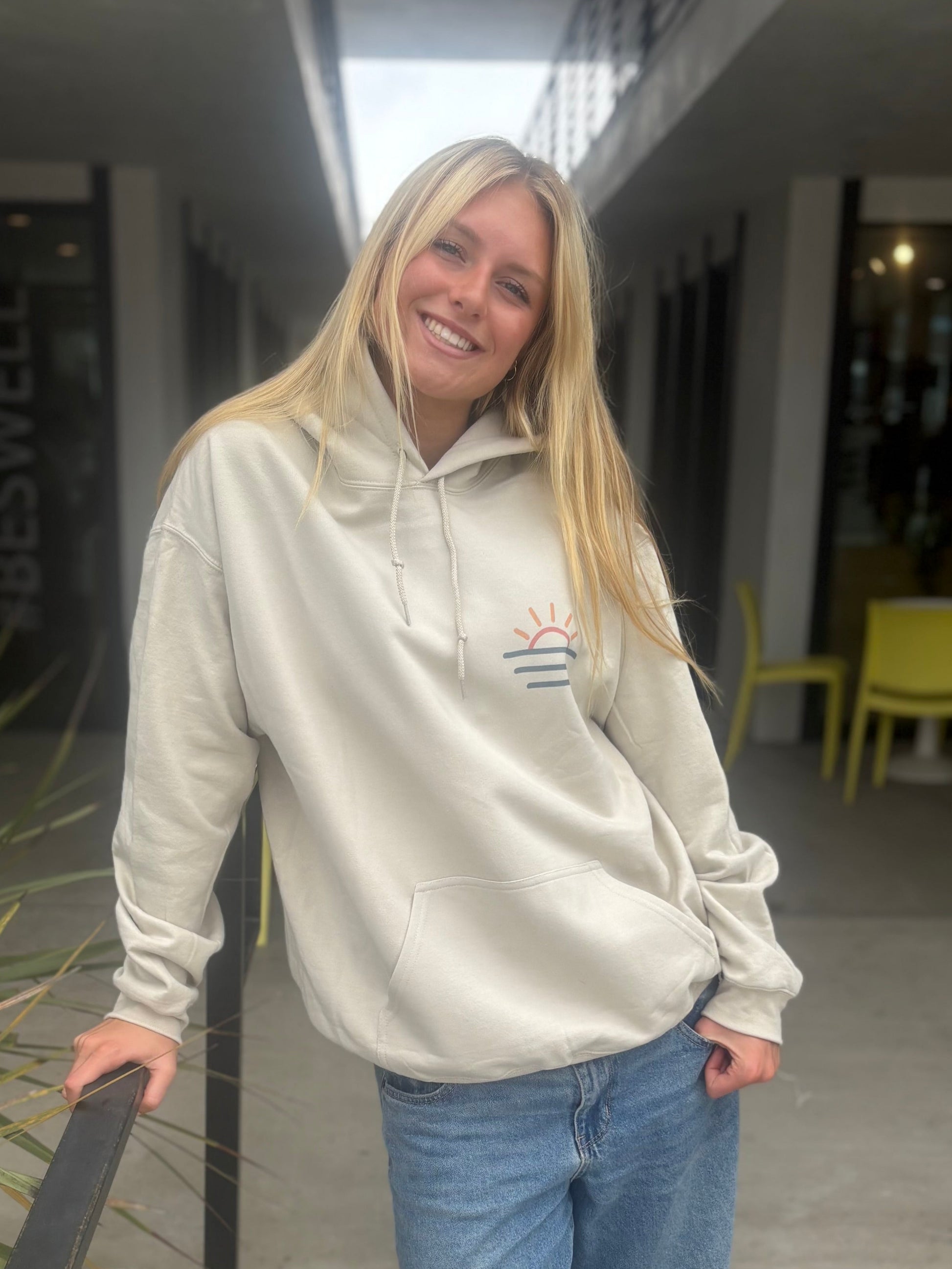 Soft tones, laid-back vibes, and coastal nostalgia — the Let’s Watch the Sunset Hoodie is your new go-to for golden hour and beyond. Crafted in a cozy sand-colored fleece, this hoodie features a minimal front chest graphic and a bold, vintage-style print on the back that reads: